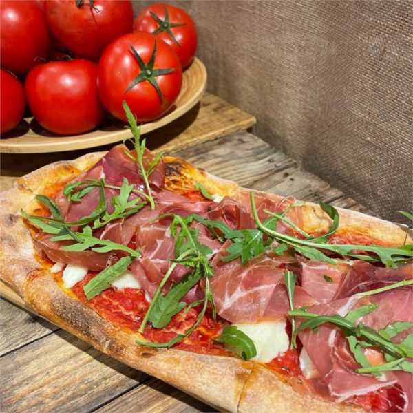 Tomato, Buffalo Mozzarella, Rocket, Prosciutto, EVOO