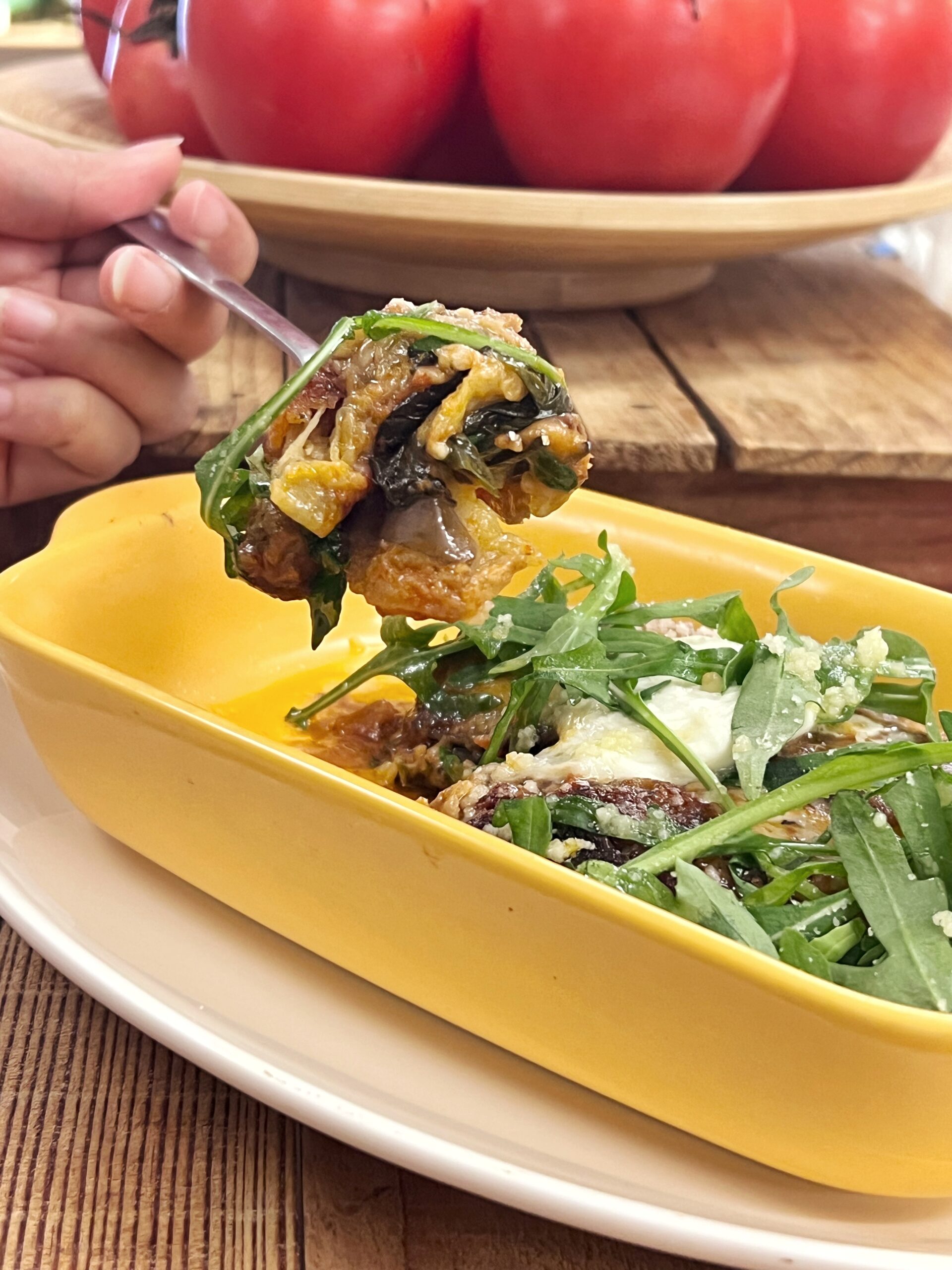 Baked eggplant with tomato sauce Fragrant provolone and Gran Moravia parmesan cheese garnish with basil pesto, allowing you to enjoy a multi-layered taste at the same time.