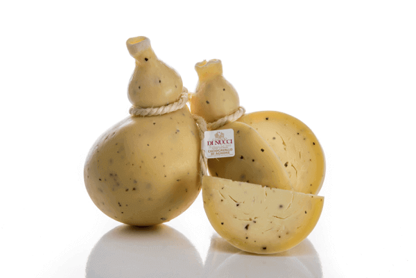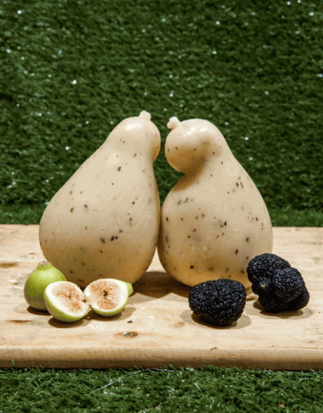 Truffle Caciocavallo is a semi-soft pasta filata cheese filled with black truffle cream. With the addition of black truffle, the flavor is even more intense, appreciated by people who love strong, aromatic flavors. You can make a really appetizing dish by cooking a slice of caciocavallo with truffles in a pan, so as to form a crust on both sides of the cheese, and serve it hot, alone or accompanied by honey.